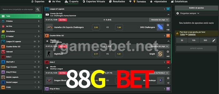O 88G Bet oferece uma grande seleção de opções de apostas em e-sports com probabilidades competitivas